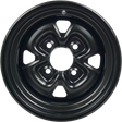 Large bell (LB) design accommodates ATV's with exceptionally large drum brakes, Heavy duty steel construction with reinforced centers, Sealed/welded centers, 0.455" valve stem hole, Wheel only no hub, Available in black