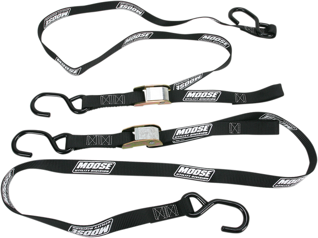 High-quality tie-downs that last, Two oversized, high-strength rubber-coated hooks, 6' long straps are printed with Moose Utility Division logo, Made in the U.S.A.