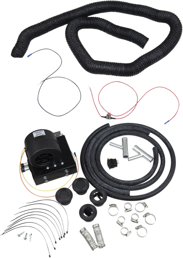 12 volt universal cab heater kit for UTVs with 1" (2.54 cm) and 3/4" (1.9 cm) radiator hoses, Quick and easy installation, Typically installs in about an hour, Water operated, Made in the USA