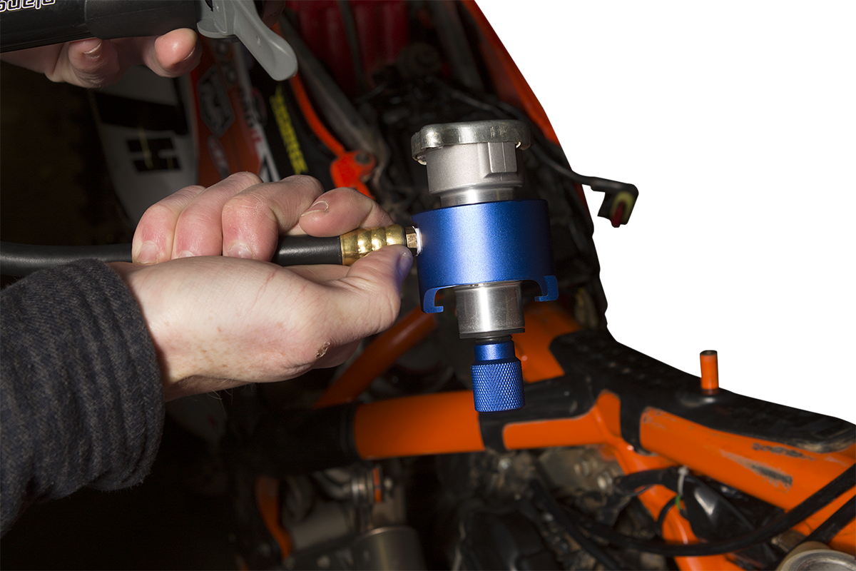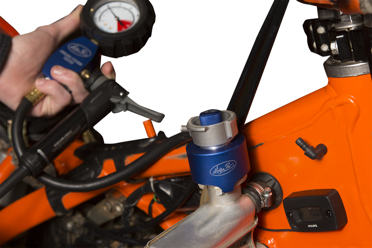 Unique design allows you to test the cooling system on a running engine to check for leaks or excessive pressure when system is hot, Unique radiator adapter will work with most motorcycle, ATV and UTV applications equipped with a 30 mm spout, Use with a common hand pump to pressurize a non-running system (pump not included), Remote, accurate, easy to read gauge makes readings and diagnosis easy, Tests radiator and radiator cap for leaks and correct pressure release limit, Specified range is most common on European manufactured radiators, Designed to work on radiator necks from 20 mm to 24.5 mm, Pressurizes motorcycle cooling systems to check for leaks, Adapter also available separately.