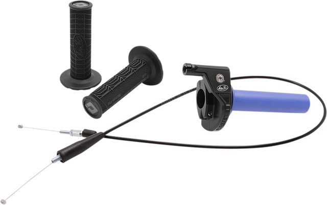 Replaces chunky thumb throttle with smooth, easy-to-use twist throttle, Includes super tough Motion Pro Titan Throttle Tube*, POM pulley with brass bearing for smooth feel and extended wear resistance, Smooth painted black finish, Light, ultra-compact design maximizes handlebar space, Die cast aluminum construction with billet aluminum cover, Compatible with Motion Pro DirtControl* V2 and ODI V2 Lock-On grips using cam "C", Fast twist rate opens throttle at 0.526 mm of cable pull per degree of rotation, Will pull 50 mm at maximum twist of 95?