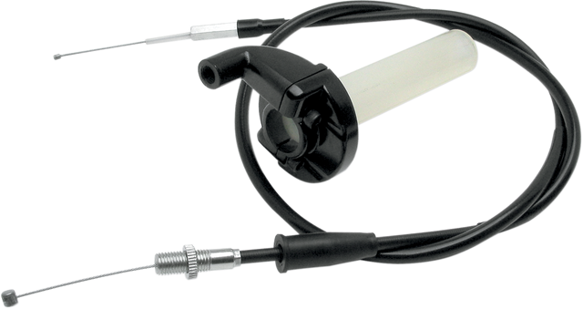 Throttles feature die-cast aluminum housing, Straight-pull assembly, Recommended for 34 mm or smaller straight-pull carburetors, 4-1/2" throttle sleeve with grip retaining ring and pop-out end cap
