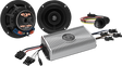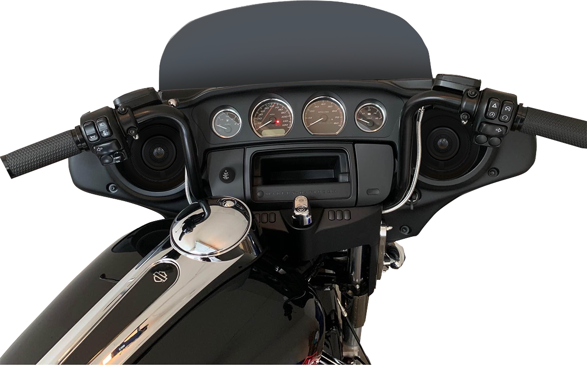 Complete easy to install kit with 150 W amplifier, Wild Boar Speakers and Bluetooth controller, Excellent performing system without need to purchase a radio, 2nd pair of Wild Boar Speakers can be added to lids, lowers or tour pack, Bluetooth controller mounts to panel on left of radio opening for system control while riding, All required plug and play wiring and hardware to complete the installation is included