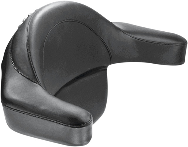 Original-style wraparound backrests with 2" longer armrests match Mustang or later-model stock Harley-Davidson seats, Covering made of highest-quality expanded vinyl, Made in the U.S.A., Requires some drilling.