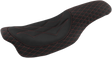 The tapered back lends to a sleek appearance while still offering adequate cushioning for passengers., Cut low with plenty of lower back support to keep riders looking cool and riding in comfort.