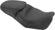 Seat moves the rider up and back slightly to provide more legroom on longer rides, Vintage seat cover is made from the highest-quality expanded black vinyl, Passenger seat area provides excellent comfort, Upgrades the style and comfort of your ride, Made in the U.S.A.