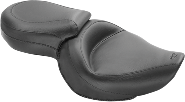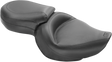 Front bucket is trimmed with a functional skirt that comes down over the frame and fender for a clean, uninterrupted look, Vintage cover is made from highest quality expanded vinyl, Passenger seat angles forward to support the rider's back, Built on a single-piece steel base that fits like stock, Made in the U.S.A.