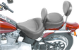 Solo seat is trimmed with a functional skirt that comes down over the frame and fender for a clean, uninterrupted look, Backrest has four height adjustments from 13.5" to 15.5" above seat bucket, and measures 7" high by 12" wide, Matching rear seat features a recess in the front of pad to accommodate the backrest (sold separately), Backrest is easily removed and installed without tools; folds forward for easy mounting of bike, Steel base with support wings holds up the full width of the foam bucket, Made in the U.S.A.