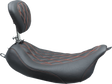 MUSTANG Wide Tripper* Solo Seat - w/ Drivers Backrest - Black w/ American Beauty Red Stitching 79727AB