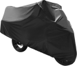 100% waterproof Tri-Max polyester with heat taped seams, Maximum UV protection against sun*s harmful rays, Packed in free compression bag for the ultimate in compact storage, Exclusive Perma-Venting* system minimizes condensation and allows air circulation, Snug elastic hem and quick release belly strap secures cover to the bike, One-inch grommets at front wheel for cable lock (not included), Soft windshield liner protects against scratching