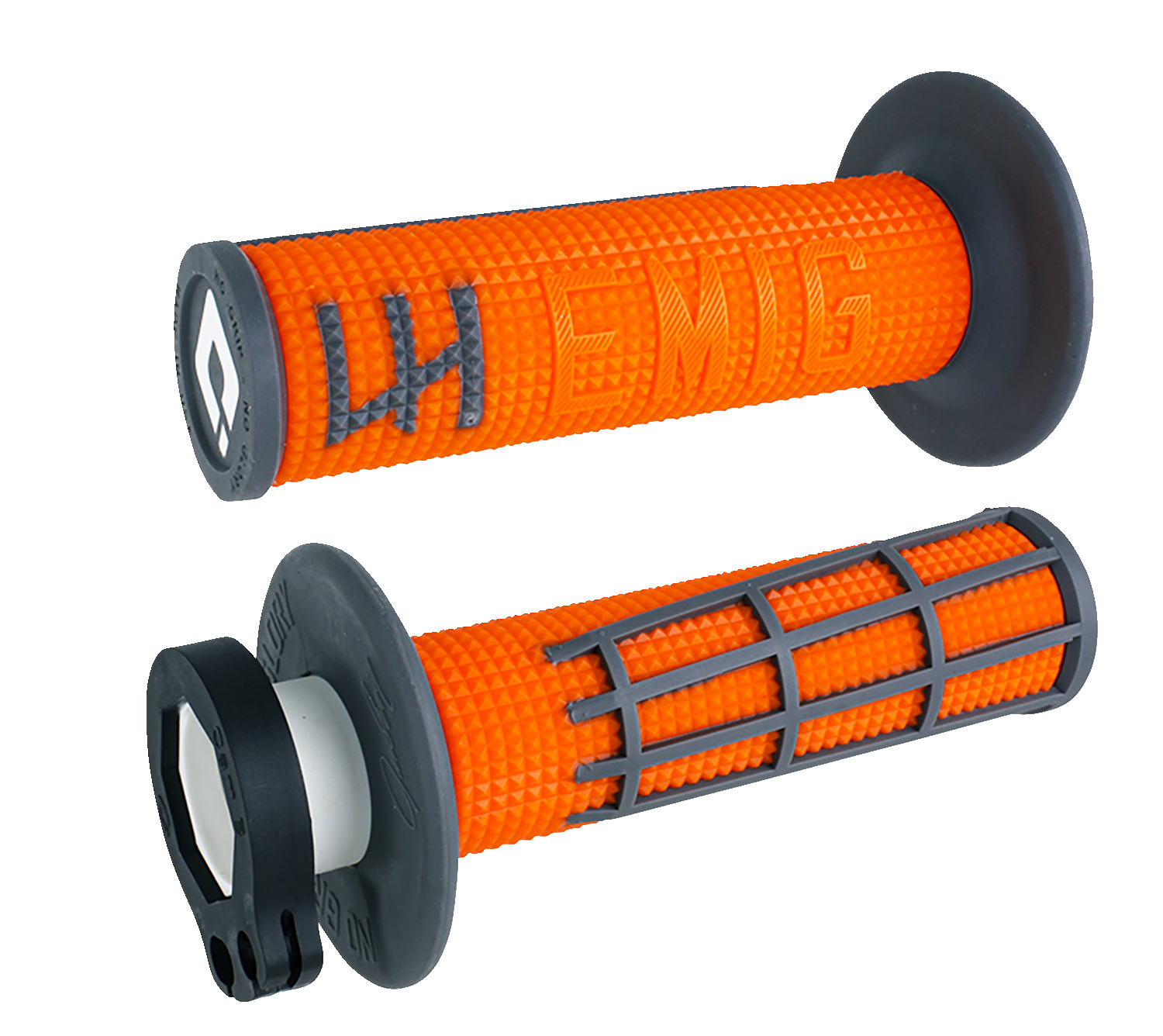 The original signature grip of five-time AMA National and Supercross champion, Jeff Emig, Simple installation and removal without waiting for glue to dry, Knockout ends easily accommodate handguards, Medium diameter knurled pattern EMIG Design includes specially designed half-waffle pattern with thumb relief, 100% slip-free performance, Throttle tube included with snap on cam to match more 2 & 4-stroke models, No safety wire required means longer grip life, even in the event of a crash