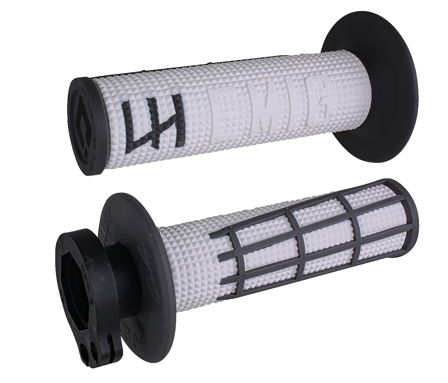The original signature grip of five-time AMA National and Supercross champion, Jeff Emig, Simple installation and removal without waiting for glue to dry, Knockout ends easily accommodate handguards, Medium diameter knurled pattern EMIG Design includes specially designed half-waffle pattern with thumb relief, 100% slip-free performance, Throttle tube included with snap on cam to match more 2 & 4-stroke models, No safety wire required means longer grip life, even in the event of a crash