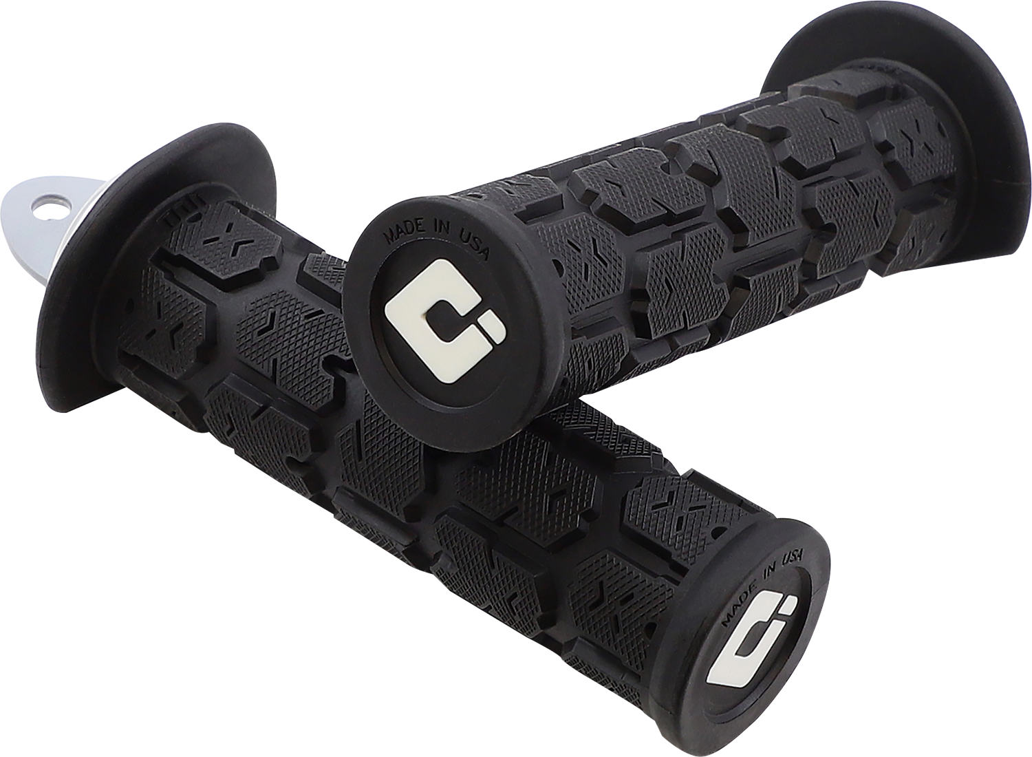 Chunky, oversized grip provides extra shock absorption and improved control , Larger grip diameter delivers extra padding, rugged surface pattern for better traction, Extra-large raised pads provide shock absorption with deep grooves to channel away dirt and debris, Molded inner 1st pass for easy, knock-out-ends for full-wrap handguards, Preinstalled ODI V2.1 Lock-Jaw Clamps with screws , Patented Lock-On Grip System* design delivers easy installation and ensures 100% slip free performance
