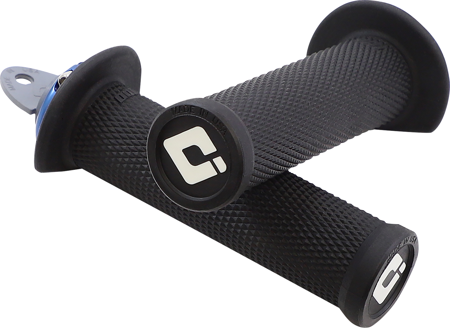Low-profile grip delivering exceptional control designed specifically for racing, Full diamondized pattern provides slim profile and excellent traction, Exclusive 3/4 flange design protect hands and allows access to thumb-throttle, Molded inner 1st pass for easy, knock-out-ends for full-wrap handguards, Preinstalled ODI V2.1 Lock-Jaw Clamps with screws, Patented Lock-On Grip System* design delivers easy installation and ensures 100% slip free performance