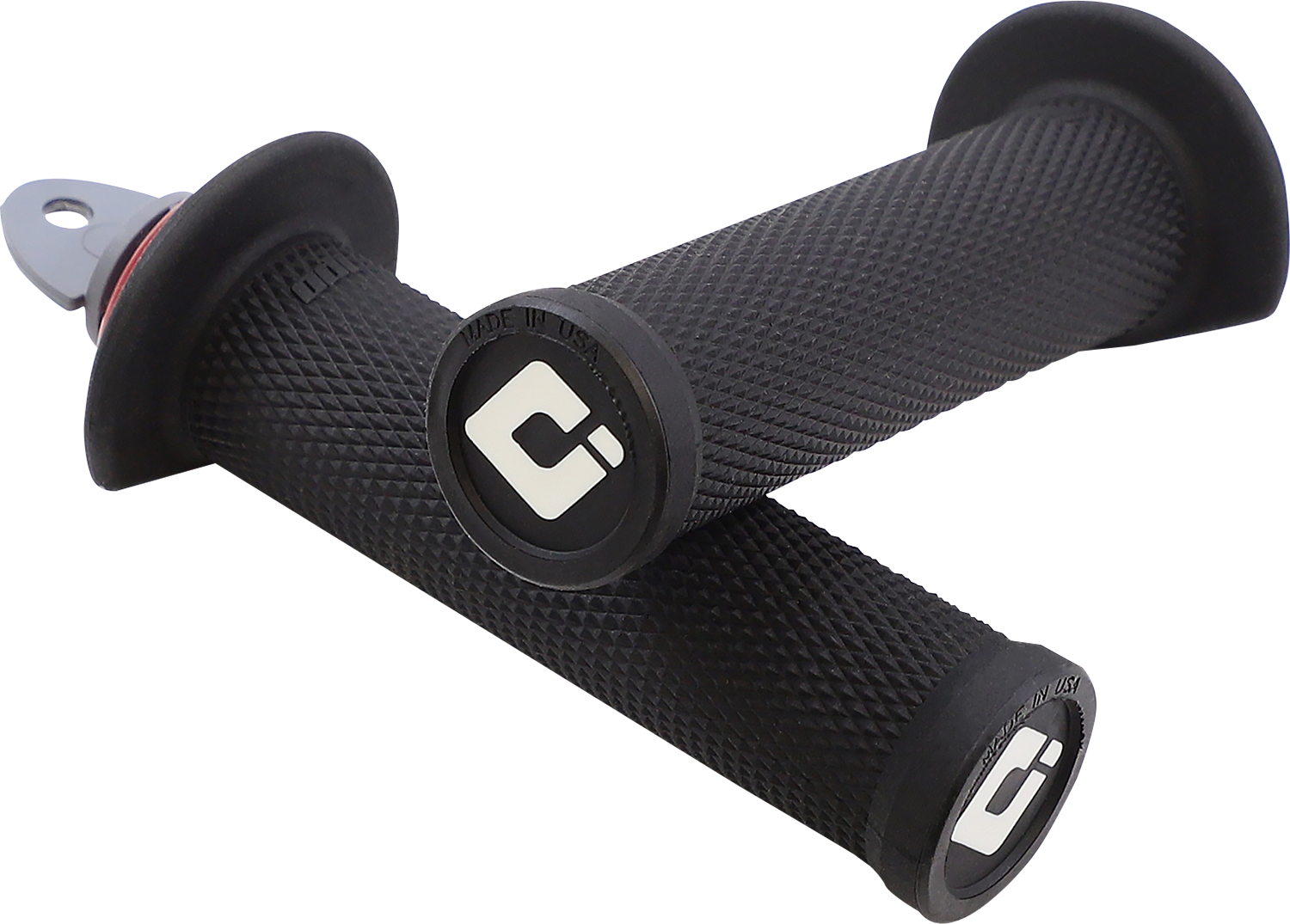 Low-profile grip delivering exceptional control designed specifically for racing, Full diamondized pattern provides slim profile and excellent traction, Exclusive 3/4 flange design protect hands and allows access to thumb-throttle, Molded inner 1st pass for easy, knock-out-ends for full-wrap handguards, Preinstalled ODI V2.1 Lock-Jaw Clamps with screws, Patented Lock-On Grip System* design delivers easy installation and ensures 100% slip free performance