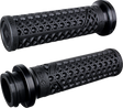 The Vans V-Twin Lock-On Grip System feature the classic Vans? waffle sole pattern and are built to deliver an amazing riding experience, 100% slip-free performance guaranteed, In-molded throttle tube with integrated application specific throttle actuation, Billet aluminum Lock-On* style clutch side clamp eliminates the need for grip glue or safety set-screws, providing simple installation and removal, T15 Torx bolts provide extra secure clamping for solid, twist-free mounting, Proprietary medium-compound durometer improves overall comfort and durability, 130 mm overall grip length with flange, Made in the U.S.A.