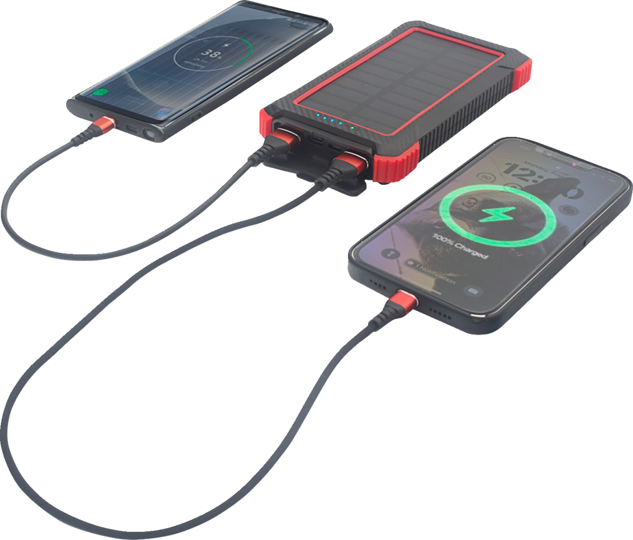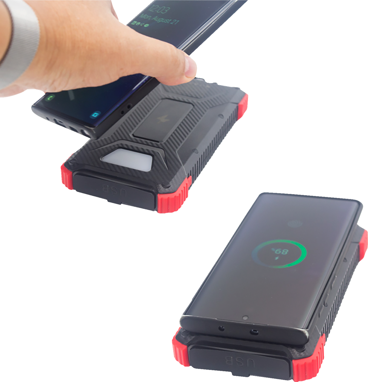 Charge your phone, tablet, and more on-the-go with portable 10K mAh power bank, USB-C port to charge your electronic device or charge the power bank, Water-resistant and shockproof, Backup charging with solar panel, Wireless charging with up to 15 W power, Weighs just 8 ounces (227 g), Dimensions; 3" x 6-1/4" x 3/4" (76 mm x 159 mm x 19 mm)