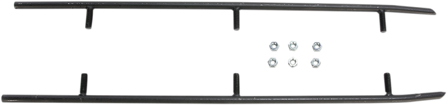 Sno-Stuff wear bars are made from the highest-quality, cold-rolled, case-hardened steel to provide the least amount of wear and the greatest value for the dollar, Formed in a permanent jig to ensure that they always fit as well as, or better than, original equipment, Double-welded studs for extra strength, Long enough to accommodate Ski Skins, Painted black to resist rust, Some models require drilling extra holes in the skis.