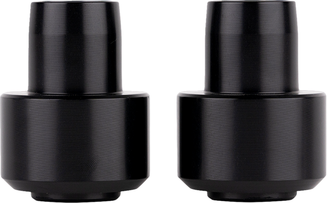 Designed specifically for use with aftermarket 23" wheels, Only compatible with Axeo Performance Cartridge Kit 0414-0747, Installing the AXEO Travel Limiting Kit for 23" wheels requires the separate purchase and installation of 7? raked triple trees, Prevents front fender from contacting the lower triple clamp or fairing at full bottom-out , Kit includes two 1.25" travel limiters, For Stock Fork Tubes, Made in the U.S.A, P65 WARNING: Cancer and Reproductive Harm