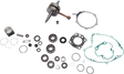 Convenient one-stop shop in a box; nearly all components required for a complete and professional rebuild, Vertex piston kit (standard compression piston, rings, pin and clips), Hot Rods heavy-duty crank (stock stroke with wrist pin bearing), Hot Rods main bearing/seal kit, Hot Rods transmission bearing kit (includes transmission bearings, output shaft collar and sprocket lock washer), Hot Rods counter balancer bearing kit, Hot Rods water pump bearing and seal kit, Vertex complete gaskets kit, including seals and O-ring kit (covers top and bottom)