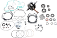 Complete engine rebuild kit, Includes crankshaft, piston kit, complete engine gasket kit with oil seals, main bearings and seals, water pump rebuild kit, transmission bearings, countershaft bushing/seal kit, cam chain and counter balancer bearings when applicable