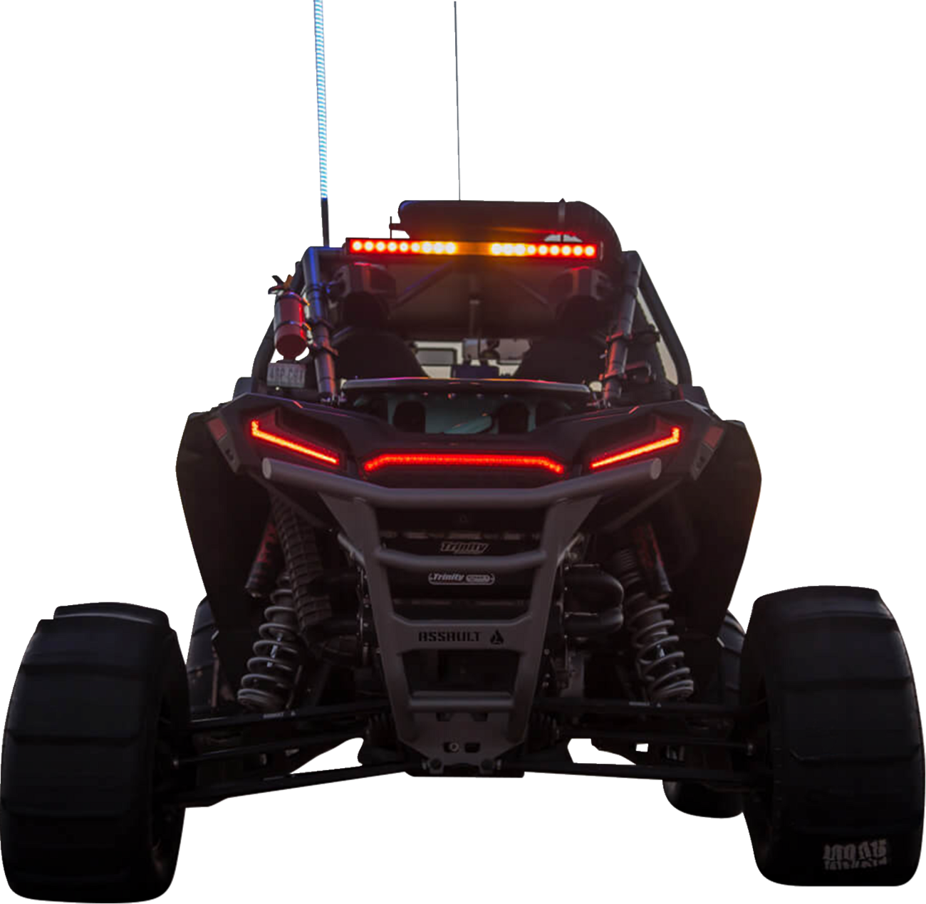 Outer red LED running light with brake light feature, solid and flashing amber LEDs, center white solid foot mount, Provides high output color LEDs in a sleek, low-profile housing with a bright flood beam pattern, This rear-mounted light bar can be configured as your running and brake lights using standard red, amber and white LEDs, Static amber light, flashing amber light, and reverse/utility white light, Ultra slim housing design, Multiple mounting options