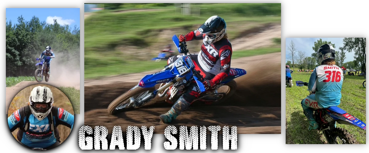 Grady, a 19 year old originating from Rapid River, MI. Grew up in a family heavily involved with dirt bikes and that has fueled his drive to begin his competitive racing career.