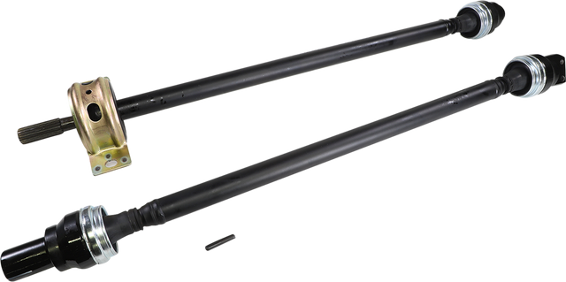Balanced and phased as complete two-piece (where applicable) assemblies by the manufacturer, The complete driveline is balanced to reduce noise and vibration, while extending its life, Including the carrier bearing reduces cost, eases assembly, and provides a complete ready to install driveline, Greaseable U-joints allow maintenance of the drive shaft, Designed with the same dimensions as an OEM drive shaft for guaranteed fitment