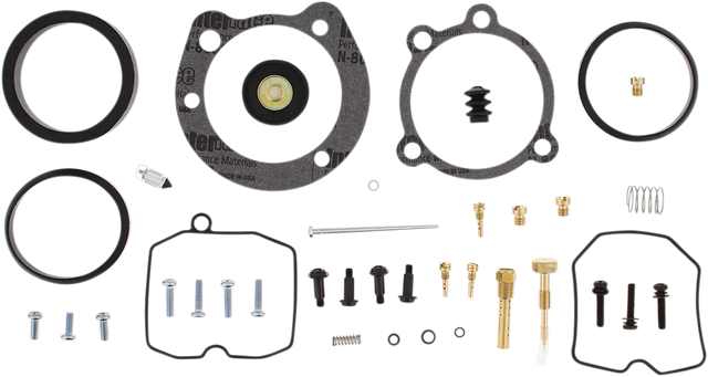 Intended for closed-course racing only, Components included in the kit are based off of US models and discretion must be used when attempting to install the kit on a non-US model, NBR rubber material is used on all O-rings and rubber gaskets; NBR has excellent resistance to the ethanol used in today*s fuels, Includes all gaskets, O-rings, float bowl, carburetor cap, accelerator pump screws, extended fuel mixture screw (with spring, washer, and O-ring), accelerator pump diaphragm (spring and boot), float needle valve (FMK tip), emulsion tube, slide needle and main/pilot jets, Three main jets and three pilot jets that can be used to tune a stock machine or a modified one
