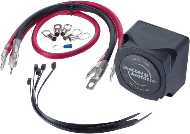 Automatically isolates secondary auxiliary battery from primary battery for running accessories, Prevents primary battery from draining when vehicle is stopped while maintaining a charge in both batteries when vehicle is running, Kit includes battery isolator module, wiring kit, mounting hardware