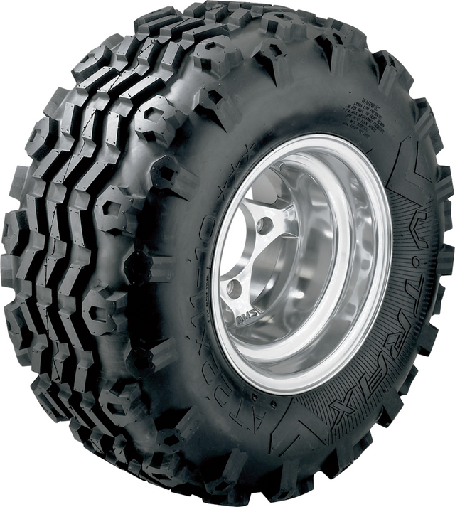Designed with aggressive shoulder knobs that wrap around the shoulder for increased side bite and sidewall protection, The non-directional tread design makes this tire an unbeatable choice for use on the farm or recreational terrain, Provides excellent traction in loose loamy terrains as well as sure-footed control on hard-packed conditions, Designed with an all terrain pattern in a 6-ply rated nylon casing makes this one tough tire, Natural rubber compound increases your puncture resistance, Not certified for use on public roads (NHS).