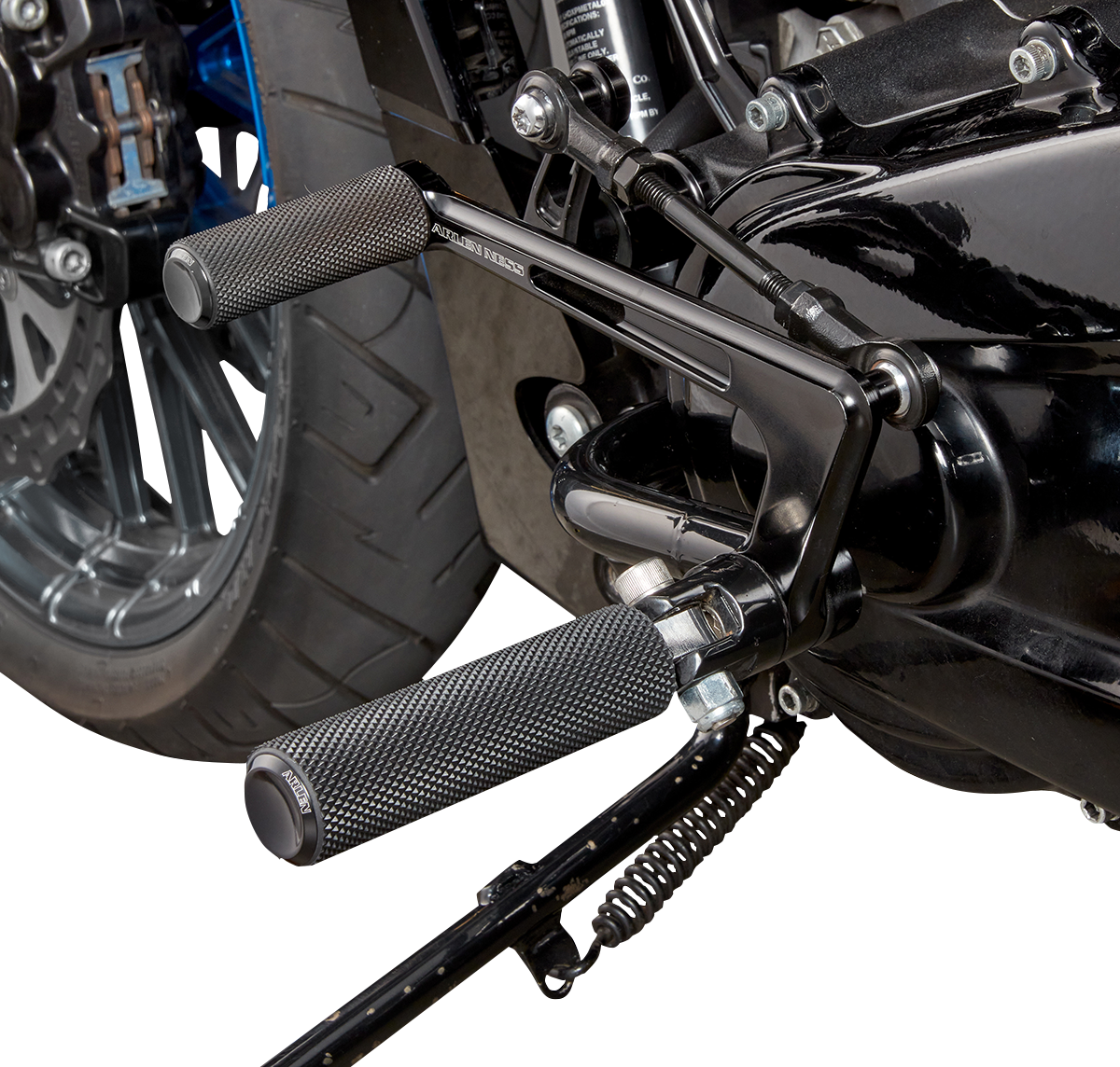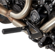 Custom Mid Control kit for Touring/Bagger models, Brings foot controls to a mid-control position, which increases ground clearance and puts the rider in a more aggressive riding position, Innovative control design utilizes factory foot control mounts on the frame, Using the factory foot control mounts instead of mounting to the engine allows for less vibration and in most cases eliminates the chance for engine case damage in the event of an accident, Mid control positioning is slightly more forward than standard mid control setups, providing aggressive riding position while maintaining comfort on longer rides, CNC machined billet aluminum control arm, Each control mount is made from CNC bent steel for durability and factory-like fit, Includes both brake and shift side foot control assemblies (no pegs or shift pegs included) , Accepts any male mount style footpegs or HD Big Twin shift/brake peg., Will work with stock exhaust.