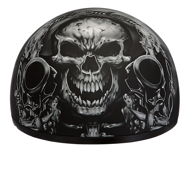DOT Approved Daytona Motorcycle Half Face Helmet - Skull Cap Graphics for Men & Women, Scooters, ATVs, UTVs & Choppers - W/ Guns