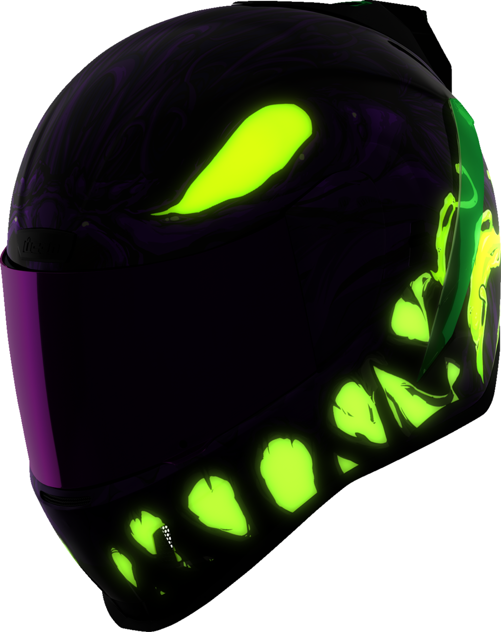 Continuous venting system, Internal airflow geometry, Fog-free ICON Optics* Shield with Rapid-Release* System, Sculpted neck roll, Injection molded polycarbonate shell for strength, Prolock* positive shield locking system, Internal Dropshield* with exterior switch, Removable molded breath deflector, The Dropshield* visor must only be used while the main face shield is in the fully closed position, Removable Hydradry* 3-piece moisture wicking liner, Internal speaker pockets work with ICON's R.A.U. Bluetooth device, Includes Dark Smoke DropShield* and Rubatone Black Speedfin*