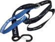 Made from abrasion resistant nylon webbing, All stitching is double stitched with square/cross with heavy duty nylon thread, Top soft loop extension with rubber coated "S" hook incorporated into design that protects your handlebars, Assembly strength is 1400 lb. and a 400 lb. load limit, Custom spring loaded lock-on "S HOOK" bottom for secure connection, Custom silk screened non fade graphics in three factory colors, Heavy duty steel "cam-lock" with heavy duty steel spring for a secure lock