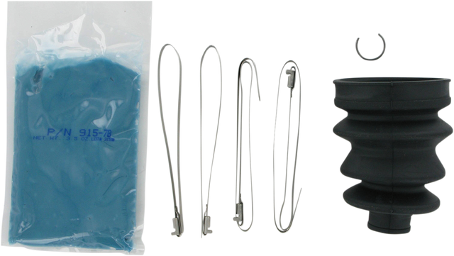 Replace those dangerously worn, inexpensive CV boots before dirt, dust and grime destroy expensive CV joints, Tougher than stock and come with everything you need to complete the job, Each complete assembly fits one side, Heavy-duty puncture-resistant boot, Comes with grease and clamps, Made in the U.S.A, Sold each