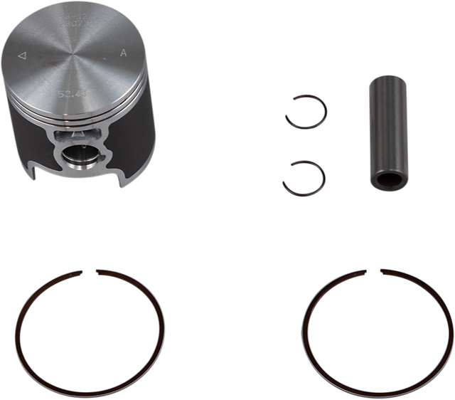 Piston is heat treated with a T-5 hardening and tempering cycle, Piston skirt is coated with a high-tech Molybdenum Disulphite coating for faster break-in time and increased piston life, Gravity-cast aluminum alloy (not forged) with 18% silicone content, Cast OE replacement piston, Kit includes piston, rings, wrist pin and circlips