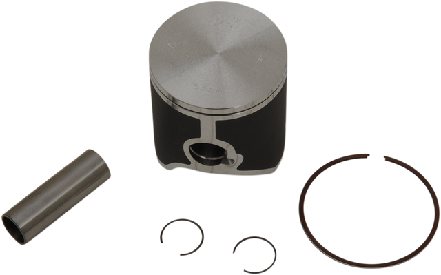 The piston is heat-treated with a T-5 hardening and tempering cycle, The piston skirt is coated with a high-tech Molybdenum Disulphite coating for faster break in time and increased piston life, Gravity-cast aluminum alloy (not forged) with 18% silicone content, Unique cast GP-style race piston with only one compression ring, Piston kit includes piston, ring, wrist pin and circlips