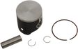 The piston is heat-treated with a T-5 hardening and tempering cycle, The piston skirt is coated with a high-tech Molybdenum Disulphite coating for faster break in time and increased piston life, Gravity-cast aluminum alloy (not forged) with 18% silicone content, Unique cast GP-style race piston with only one compression ring, Piston kit includes piston, ring, wrist pin and circlips