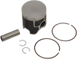 Piston is heat treated with a T-5 hardening and tempering cycle, Piston skirt is coated with a high-tech Molybdenum Disulphite coating for faster break-in time and increased piston life, Gravity-cast aluminum alloy (not forged) with 18% silicone content, Cast OE replacement piston, Kit includes piston, rings, wrist pin and circlips
