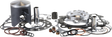 The piston is heat treated with a T-5 hardening and tempering cycle, The piston skirt is coated with high-tech Molybdenum Disulphite for faster break in time and increased piston life, The cast piston is gravity-cast aluminum alloy (not forged) with 18% silicone content, Cast OE replacement piston, Top end kit includes piston, rings, pins, circlips, top-end gaskets, and wrist pin bearing