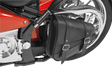 Durable bag construction using high-quality synthetic black leather with black buckle, Easily mountable using 3 sturdy mounting straps that slide into mounting slots for simple, secure installation, Features a rigid plastic back, Includes protective film to keep the swingarm or frame from being scratched, Magnetic closure for extra security, 10.5" L x 4.5" W x 11.5" H, Not for use with passenger floorboards or passenger footpegs.